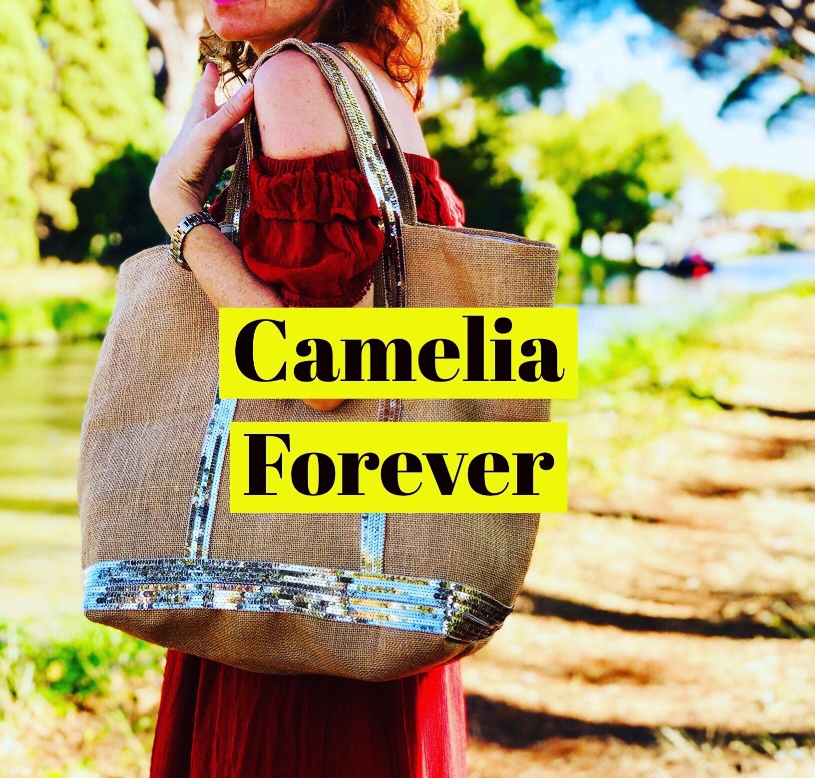 You will devastate this large natural tote bag. The essential round sequins in pale gold are magnificent and luminous, the same ones that a certain designer gives a subtle sparkling look. Perfect for the summer for the beach or to remind you of your vacation at the start of the school year. Its large size is perfect for carrying all your belongings. Perfect for the office or high school. This model is lined in ecru cotton with a zipped pocket and a magnetic clasp. The handles are long enough for shoulder carry.