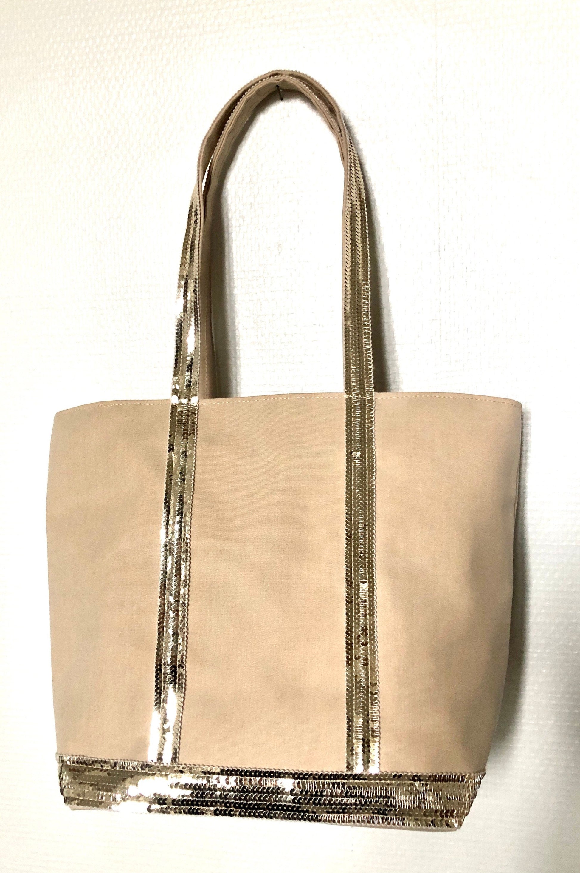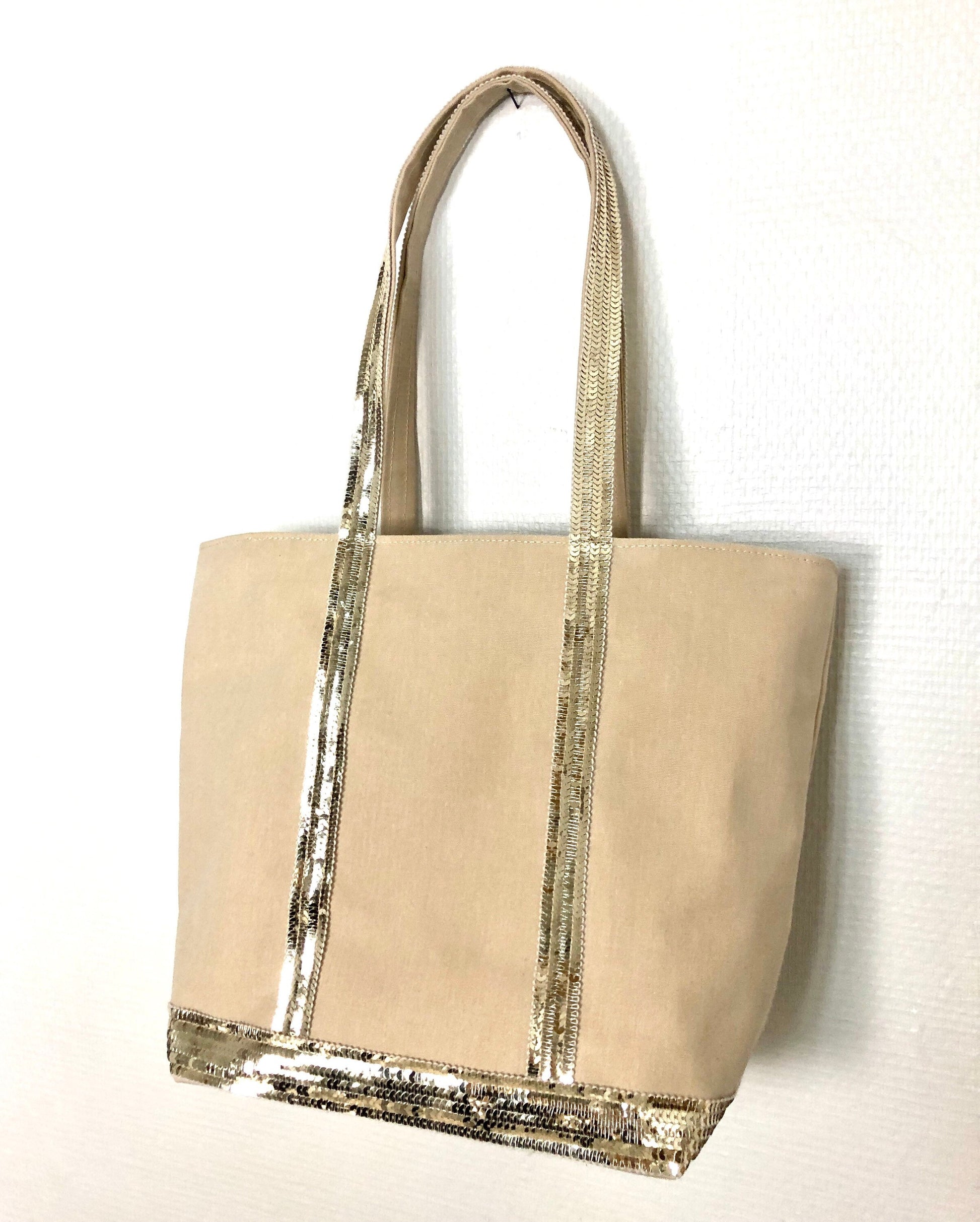 Sac cabas beige paillettes, sac été, sac collège, sac demoiselle d'honneur, cabas sequins plage